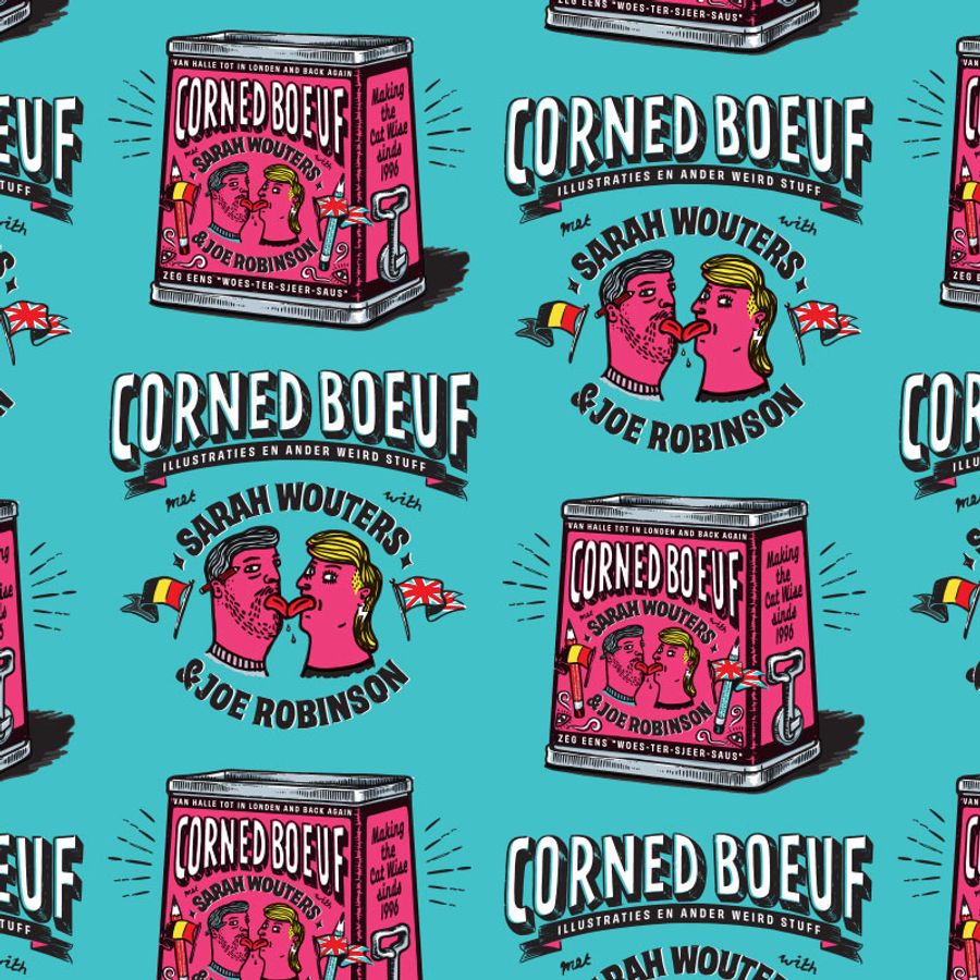 Joe Robinson en Sarah Wouters kwamen mekaar toevallig tijdens een Erasmus-uitwisseling in Exeter (UK). Dertig jaar later is hun liefde voor elkaar en hun passie voor illustratie uitgegroeid tot iets ‘weird and wonderful’ en houden ze hun eerste gezamenlijke tentoonstelling CORNED BOEUF.