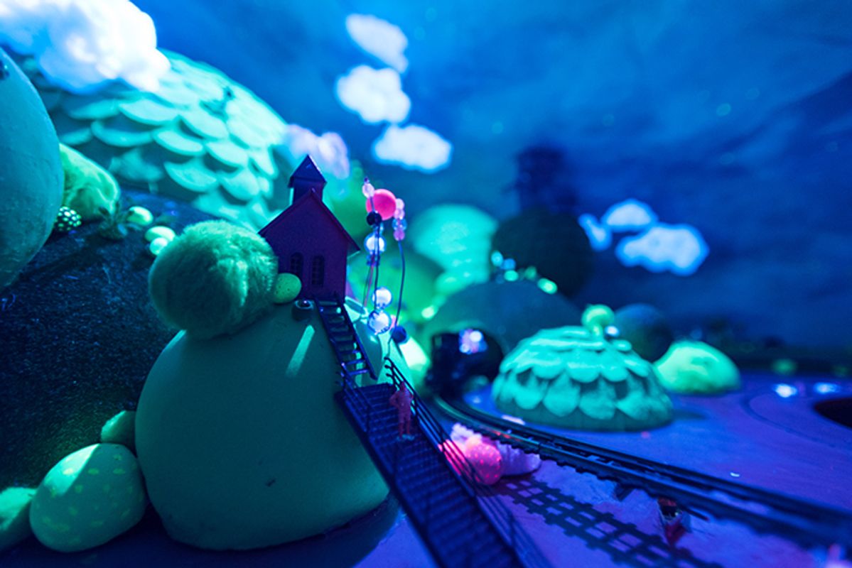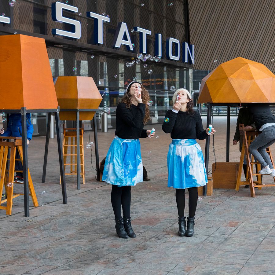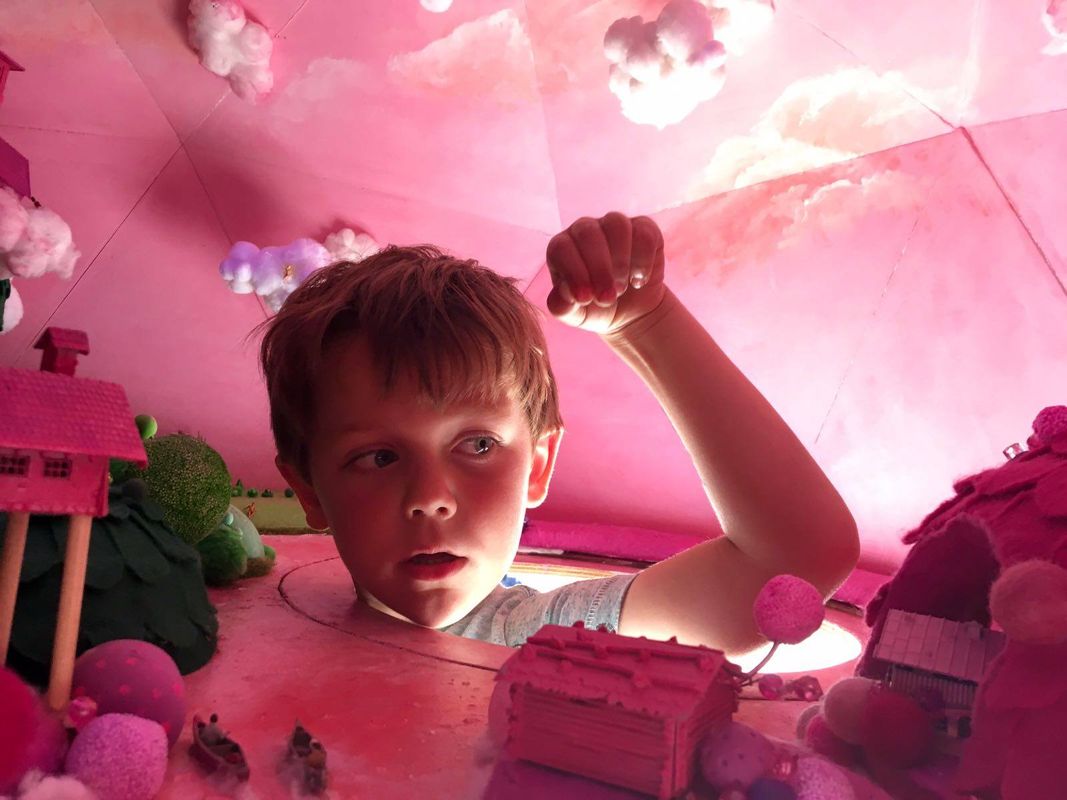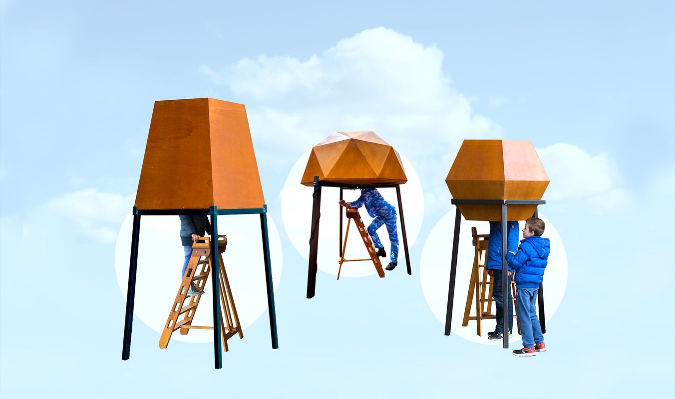 Stap uit het dagelijks leven en laat je verrassen door een waaier aan geuren, beelden en geluiden. De buitenkanten zijn gemaakt van hout. Binnen in de vormen zijn gigantische kijkdozen gemaakt, een zoet fantasielandschap, een onderwaterwereld en een brein.