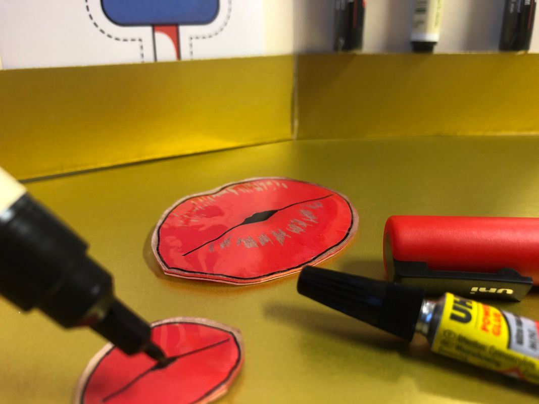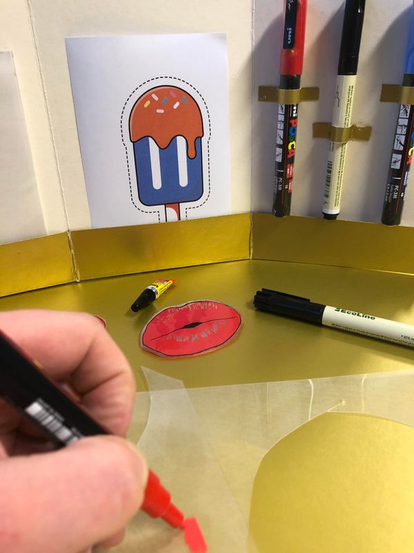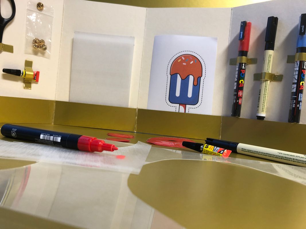• 3 (Acryl)stiften (rood, blauw & zwart)