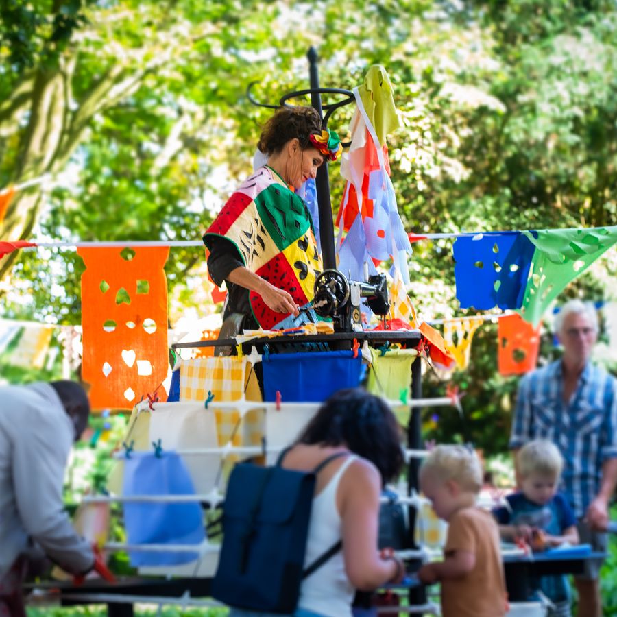 Fiesta! nodigt mensen uit om gezamenlijk een Mexicaanse slinger te maken, en zo een verbinding te scheppen tussen verschillende plekken van het festival. Iedereen kan meedoen.