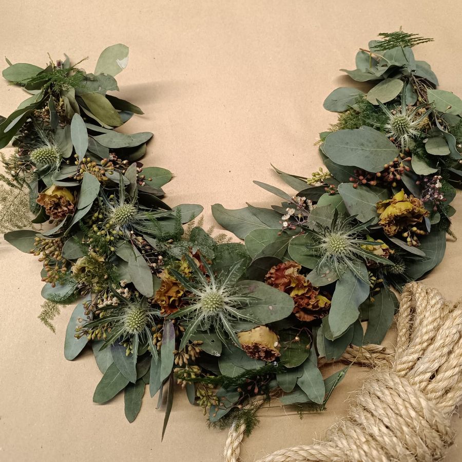 Maak zelf een prachtige guirlande met seizoensbloemen.