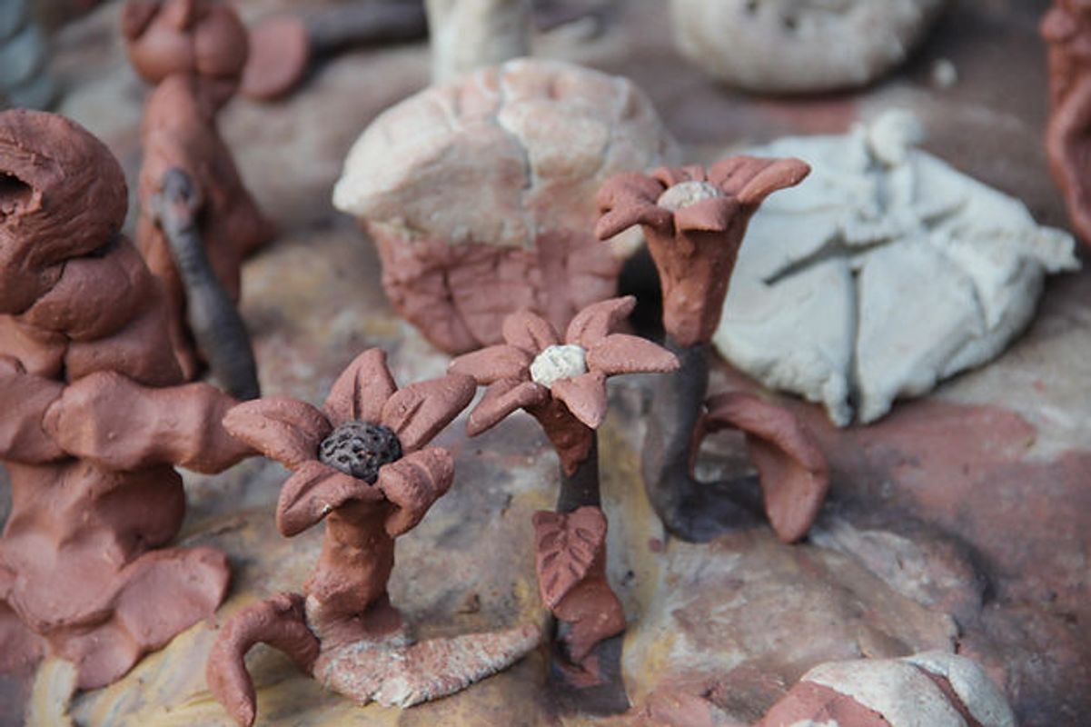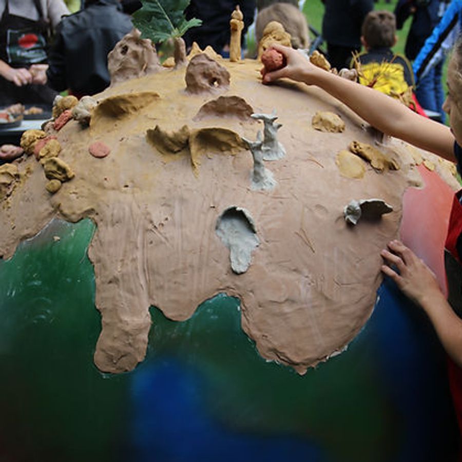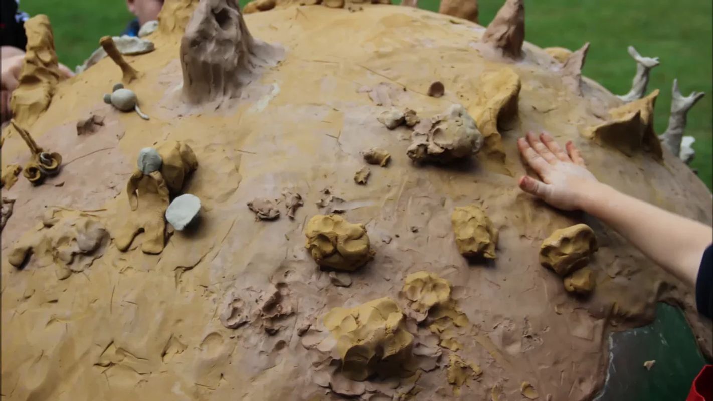 Boven op een grote bol ontstaat langzaam een nieuwe wereld. Een droomplek met glooiende heuvels, grillige bergen, borrelende bronnen, veilige havens en wilde wouden. Iedereen die wil meespelen, boetseert uit gele, zwarte, witte en rode klei aan een wereld vol verrassingen en mooie momenten...