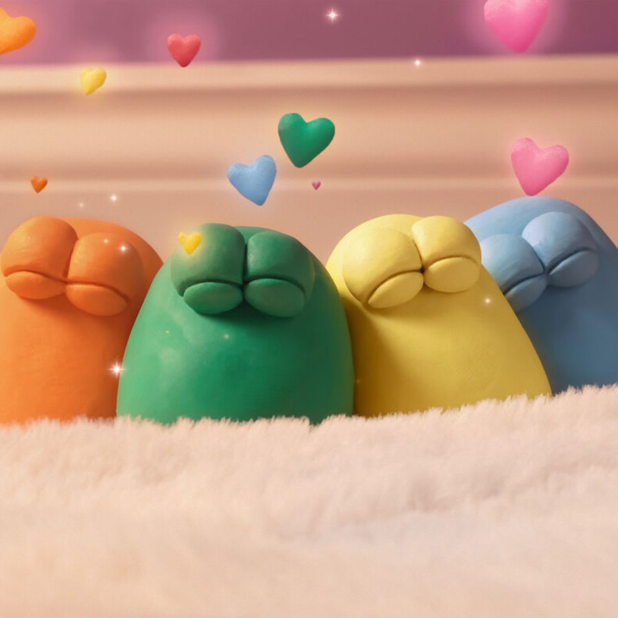 Vijf nieuwsgierige vriendjes, vijf kleuren in klei. De popjes halen grapjes uit, spelen spelletjes en leren luchtige lessen over teamwork, empathie en tolerantie.