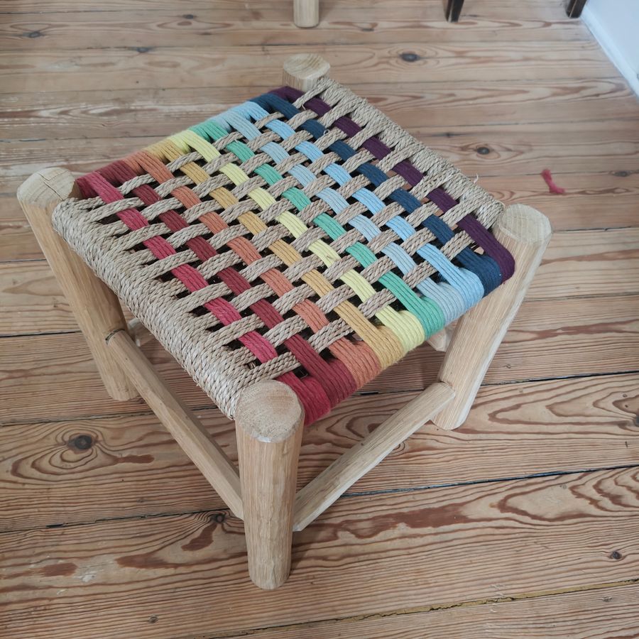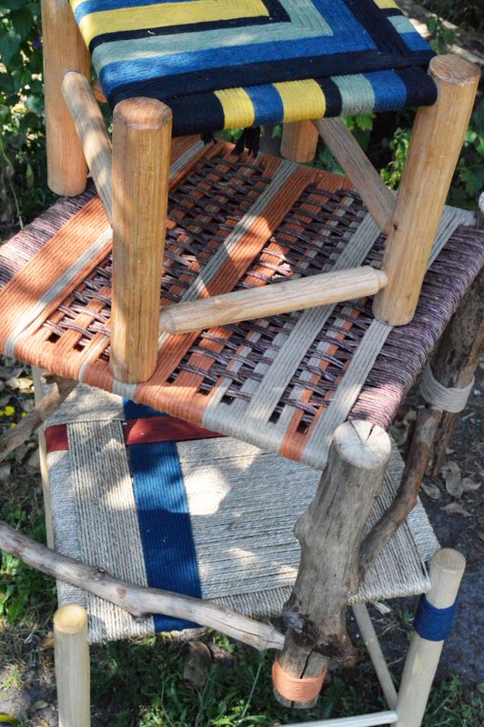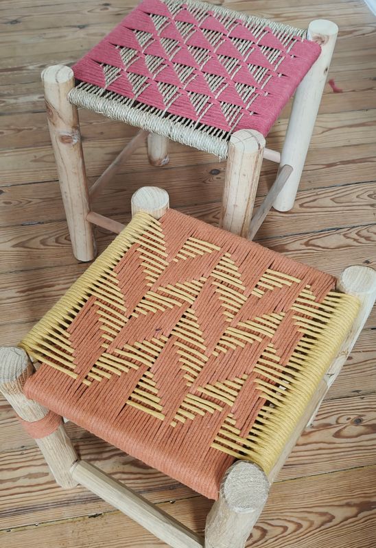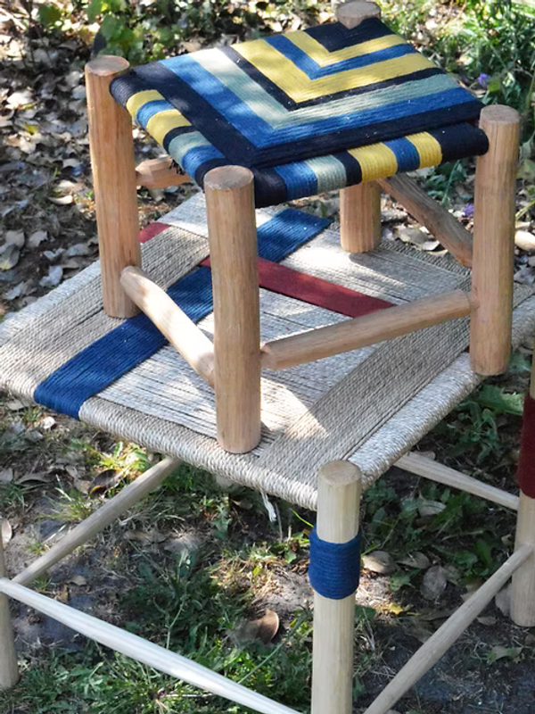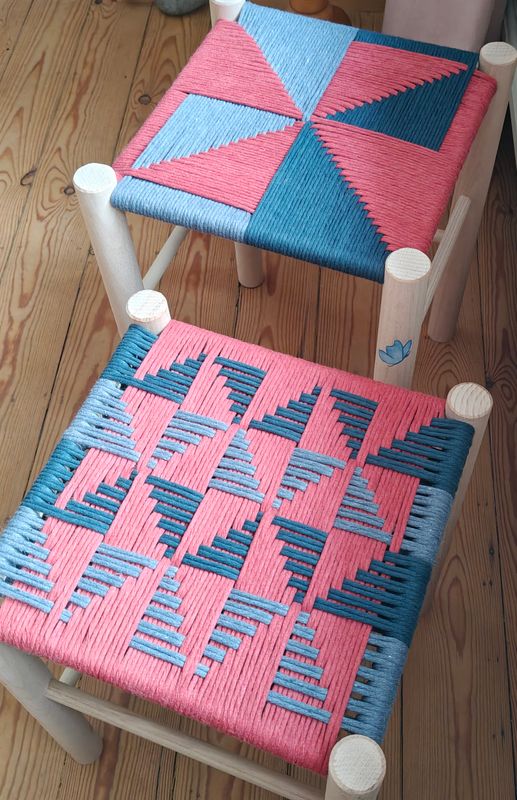 Ze zijn snel ergens bij te schuiven en makkelijk terug op te bergen. Traditioneel worden zittingen geweven van mattenbiezen of zeegras, maar wil je vrolijke kleurtjes of een patroontje creëren dan kan je katoengaren gebruiken.
