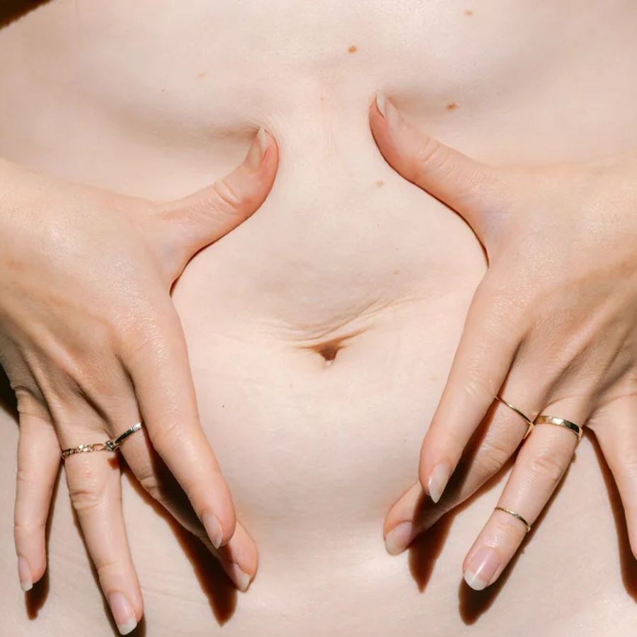Een ronde buik priemend van onder een blouse, naakte huid in een zachte omhelzing, twee borstkolven in tegenlicht – de beelden van fotografe Eveline Smolders schetsen een verhaal van moederschap, en misschien wel vooral van transformatie, verbondenheid en groei.