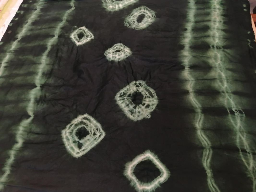 Shibori is een Japanse verftechniek om mooie patronen op stof te creëren. De stof wordt geplooid, genaaid of gedraaid en in een verfbad gedompeld. Zo bekom je speciale, typische shibori-effecten. Elk stuk stof is uniek.