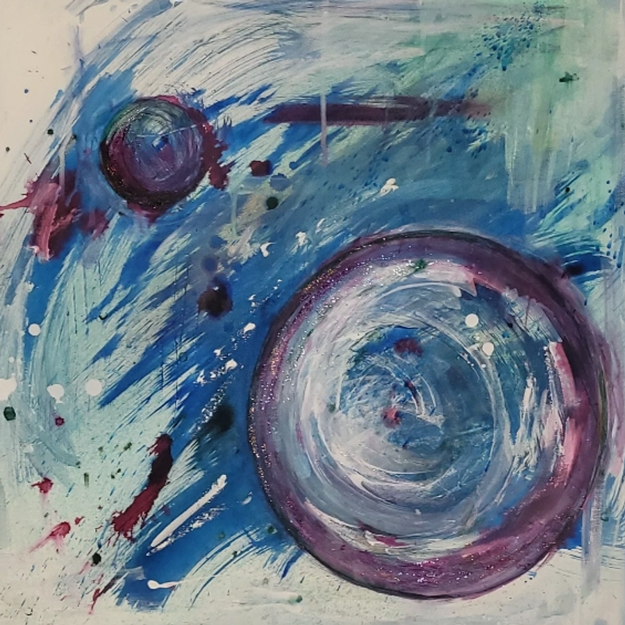 Ze signeert nooit aan de voorkant: elk werk mag vrij gedraaid worden, zonder boven- of onderkant. Want bij haar draait alles om één principe: it’s all about circles and paint.