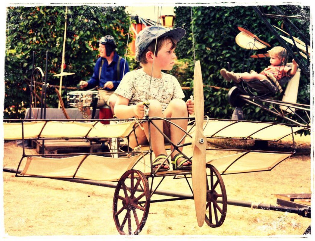 Een kleine zweefmolen met 4 unieke vliegmachines, gebaseerd op de eerste modellen van de pioniers van de luchtvaart. Marquis De Quevilly, een van deze pioniers, geloofde heel sterk dat zijn manier van vliegen zou werken en spendeerde zijn volledige fortuin aan het bouwen van verschillende machines. Spijtig genoeg kwam hij hiermee nooit van de grond. Met deze charmante zweefmolen worden zijn dromen nu toch werkelijkheid.