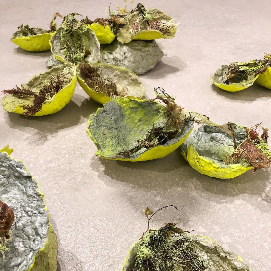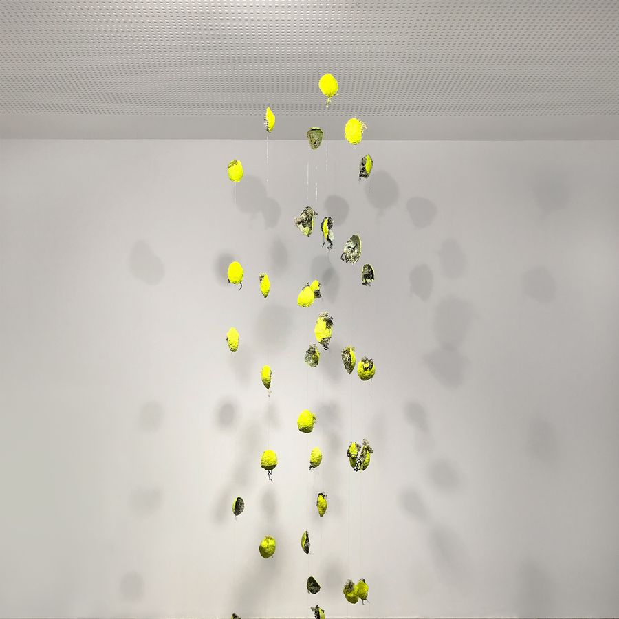 Mijn werk hanteert een poëtische benadering van het begin van (planten) leven. Het begint met een cel, die zich ontwikkelt tot een verweven weefsel dat geleidelijk de uiteindelijke structuur en vorm van de soort vormt. Ik heb deze cellulaire weefsels vergroot en omgevormd tot een delicate maar veerkrachtige structuur. Om dit te bereiken, gebruik ik brandnetelvezels, die ik eerst draai tot draadjes, die vervolgens de vorm aannemen van cirkels van verschillende groottes en vormen, die langzaam dichter bij elkaar komen. Elke cirkel is met knopen verbonden, waardoor een stabiele structuur ontstaat. Dit artistieke proces weerspiegelt de natuurlijke groeipatronen en verwijst naar tijd en geduld. De resulterende structuur roept ook kant op, een materiaal dat ooit van grote waarde was in de regio Vlaanderen. Het stuk beweegt in de wind, reflecteert het licht en laat het communiceren met zijn natuurlijke omgeving.