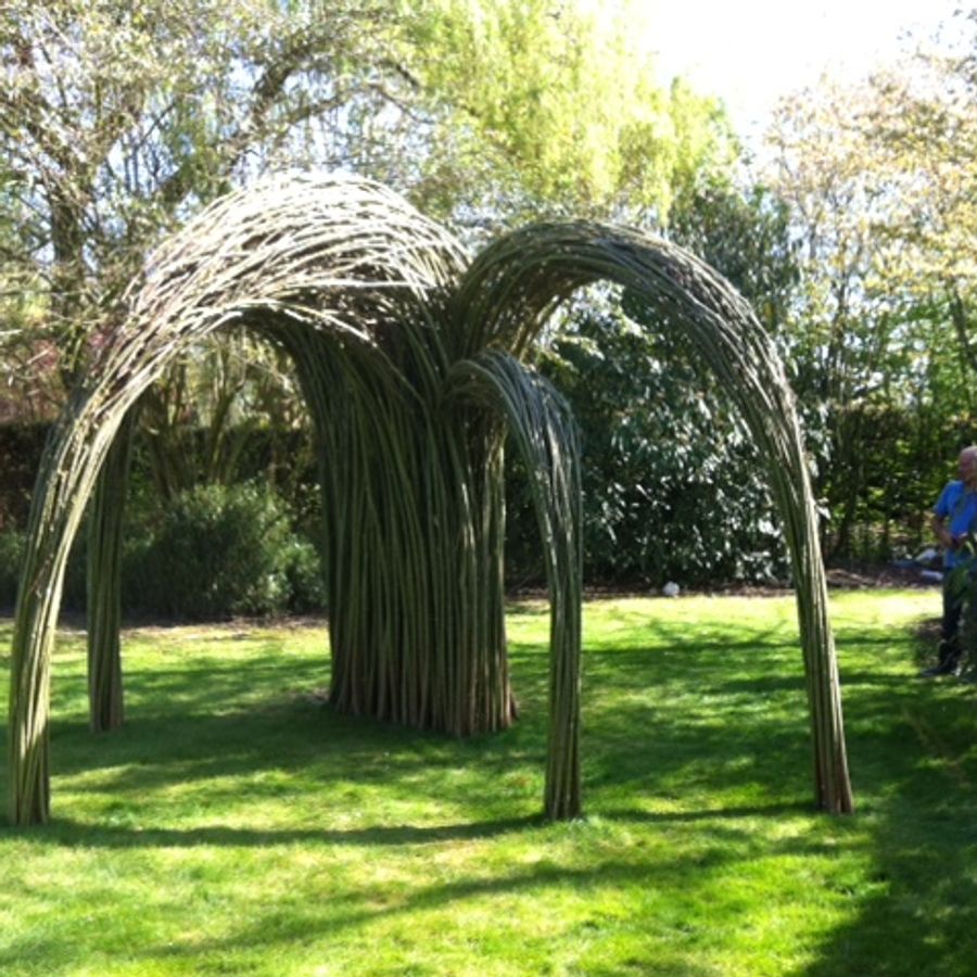 'Reunited' is een werk waarin ritme en herhaling centraal staan. Voor deze creatie werden uitsluitend takken gebruikt die op de grond werden gevonden. Met handgemaakte verbindingen uit kastanjehout zijn de takken bevestigd op een raamwerk van stevige takken, dat tussen de bomen werd gespannen.