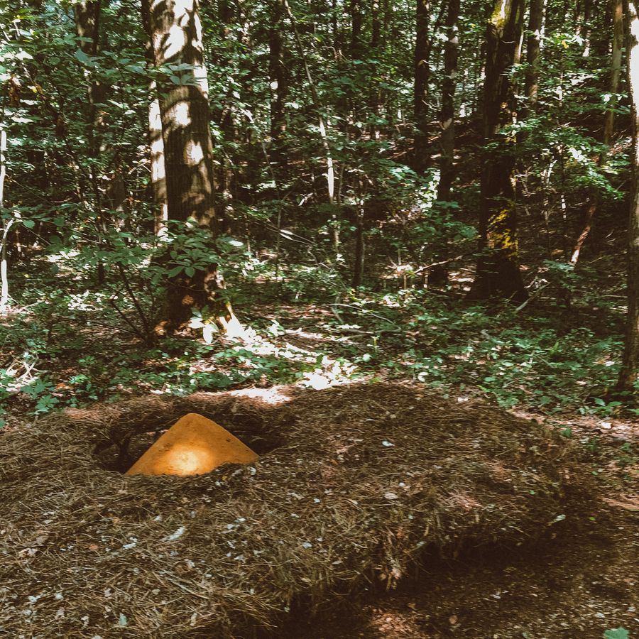 Dit zwevend tapijt van naalden is een kunstwerk dat rust en reflectie uitnodigt. Het bestaat uit een structuur van takken waarop een tapijt van dennennaalden lijkt te zweven, een rustplek midden in de natuur. De omgeving vormde een belangrijke bron van inspiratie, in het bijzonder de overvloed aan naalden op de grond. Het contrast tussen de strakke vormen en kleuren van de omliggende heuvels en het organische karakter van het naaldentapijt verwijst subtiel naar de zandheuvels van de Zavelput.