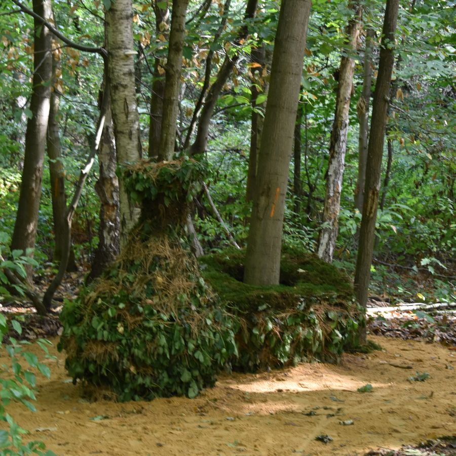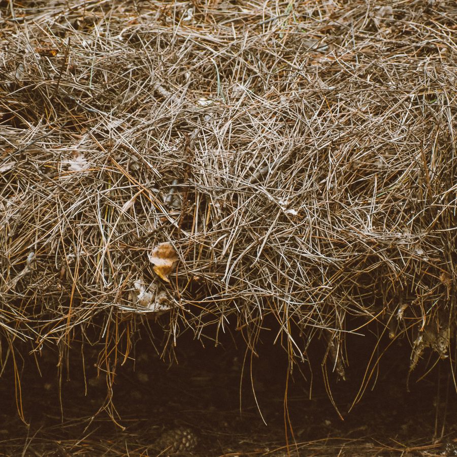 Op deze plek groeiden de braambessen het meest uitbundig, hun kronkelende vormen en levendige energie gaven richting aan mijn werk. Ik gebruikte ook takken, dennen (Pinus) en mos, allemaal verzameld in de directe omgeving. Elk element draagt bij aan een organisch geheel, waarin natuur en vormgeving samensmelten tot een verstilde compositie.