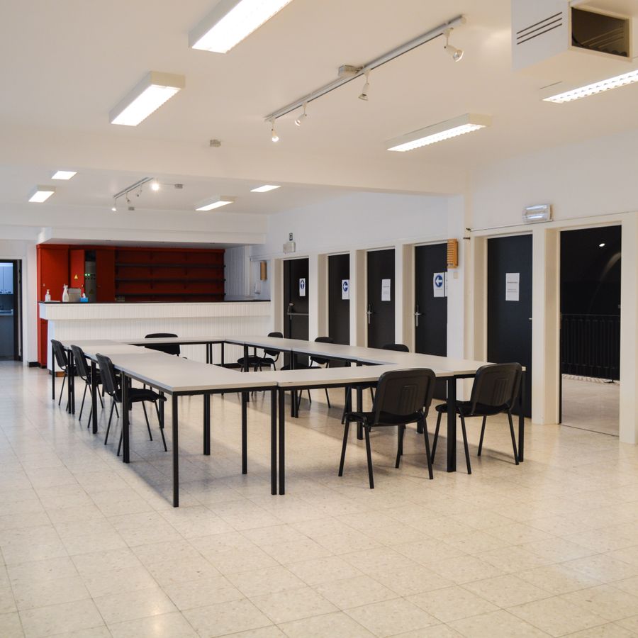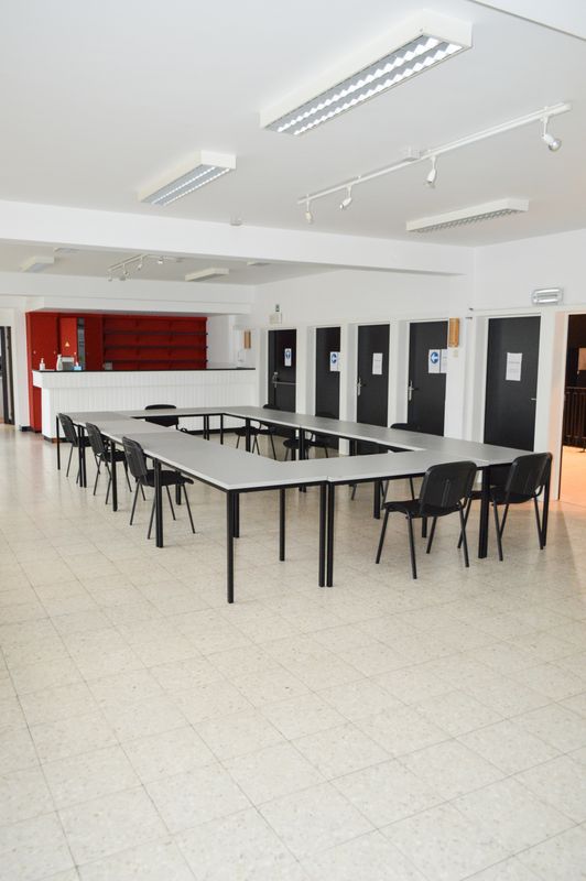 • Bar, vestiaire, en ingerichte keuken.